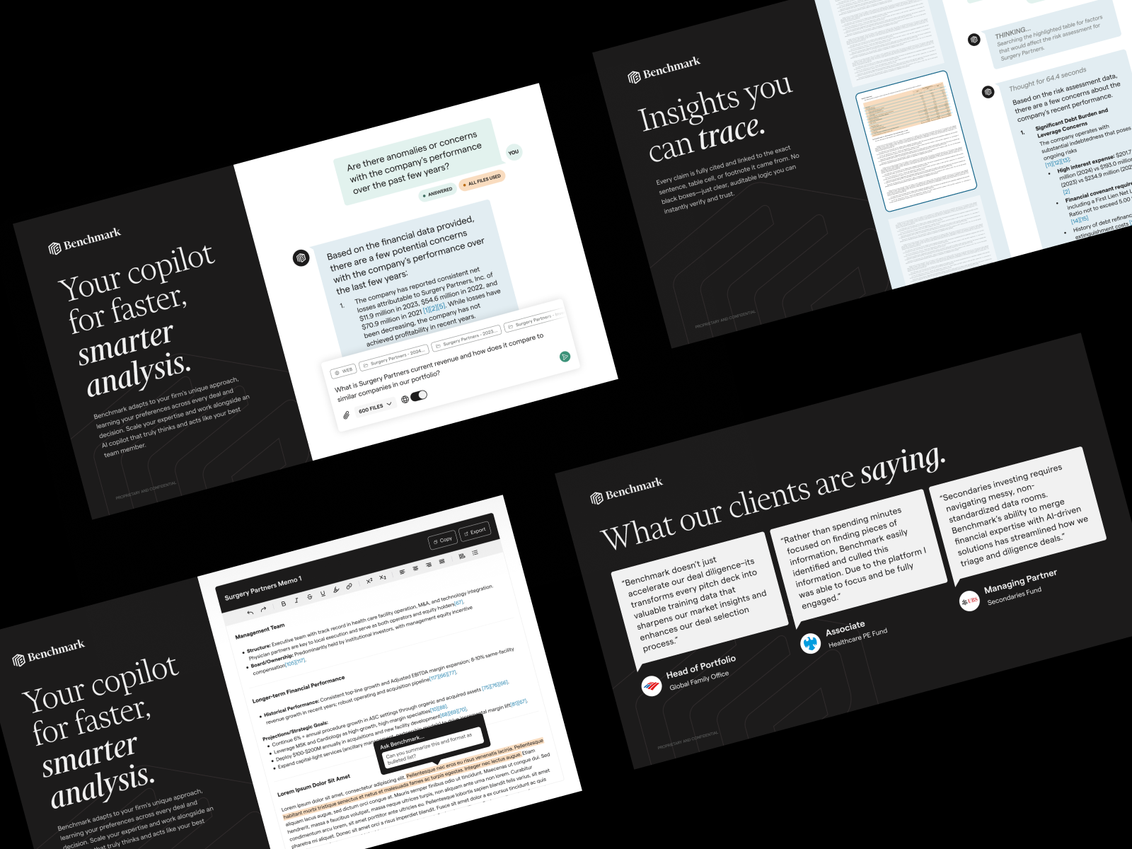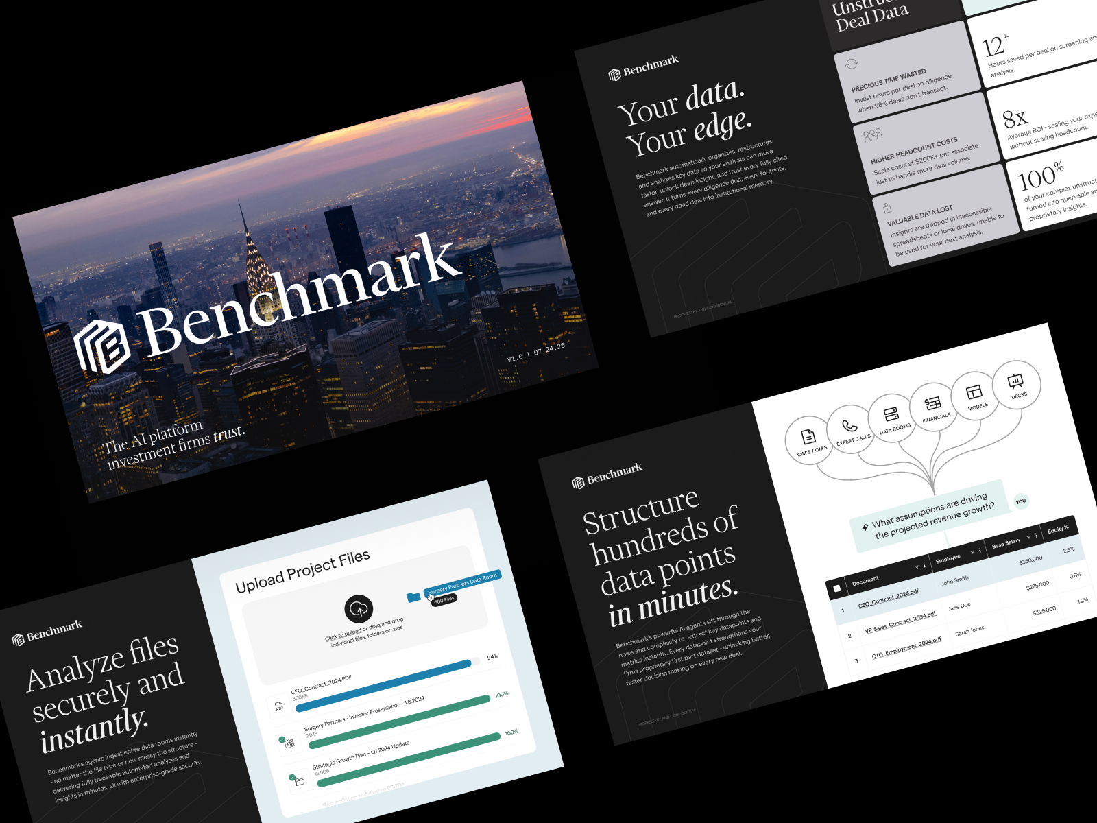 Benchmark is an ai platform that allows financial analysts to scrub through mountains of data quickly in order to identify the most promising leads for their clients and eliminate those that don’t meet their specific parameters.